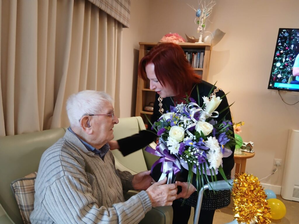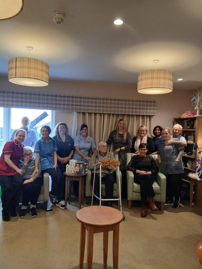 There were joyful celebrations at Kingsacre Care Home recently as we marked an extraordinary milestone. David, who lives in our Kensington Unit, celebrated his 106th birthday, making it a truly memorable occasion for everyone involved. The home was filled with smiles, laughter, and heartfelt moments as residents, staff, and special guests came together to honour such a remarkable life.