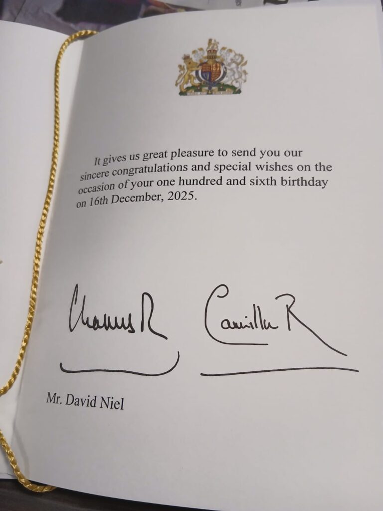 David was joined on the day by his son, the Lord Lieutenant, and the Lord Provost, making the celebration even more meaningful. It was a wonderful opportunity to recognise not only David’s impressive age but also the life experiences and memories he carries with him. The atmosphere was warm and celebratory, with plenty of conversation, well wishes, and admiration for a birthday that few are lucky enough to reach.